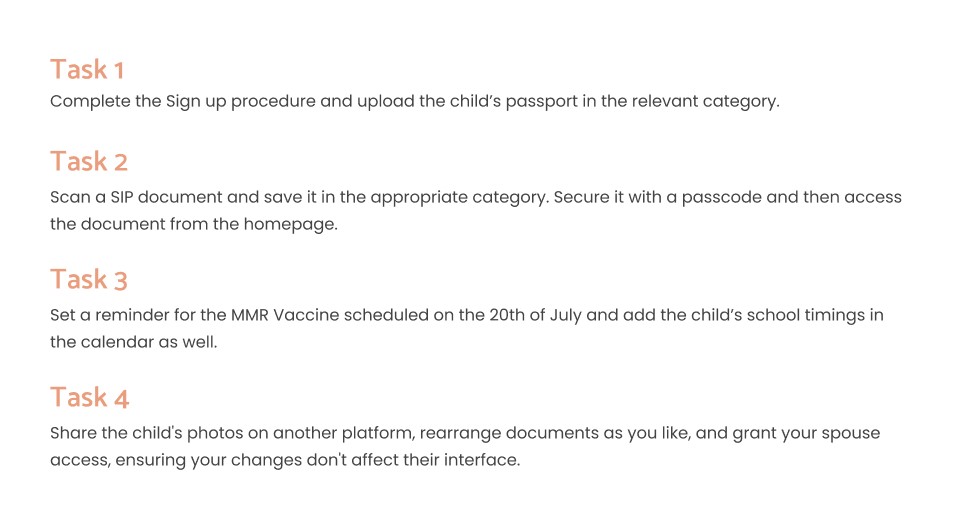 Parents of children under 14 often struggle to organize and securely store the soft copies of various important documents and records due to the presence of many categories of documents and unsynchronized style of organization with partner leading to miscommunication and confusions during urgencies.